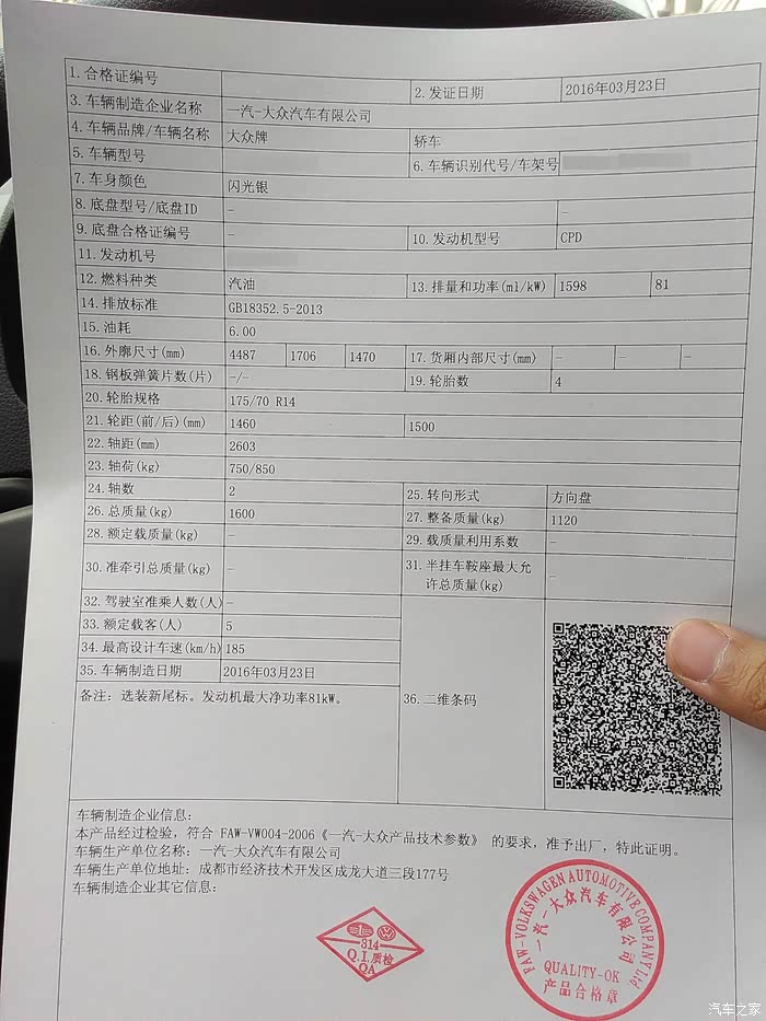 步骤三:到检验线后面的检验大厅办手续。就在这个环节,意外又发生了,扫码器扫描不出来我的合格证,也不能手动录入,只能换新的合格证,天哪,来回80公里,去一趟不容易啊,最重要的是还得等好几天。给4S打电话,看看他们有没有副本之类的文件,回答没有,必须找厂家换,只能先送回4S。根据路线,计划着先把旧合格证送回4S,再到黑龙江路的车管所办一张临牌,结果傻了,办临牌需要看合格证原件,复印件不行,而且我还是在第一次办临牌的那个工作桌办的,同一个工作人员,说什么也没用,必须看原件。最后一狠心不办了,又裸奔一周,下周二又跑了一趟城阳车管所,重复步骤二。想省点钱不容易啊,建议怕麻烦的朋友直接让4S代理上牌算了,不过要多花495块。