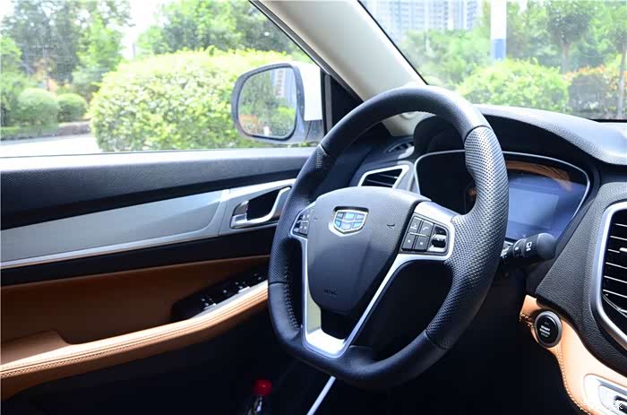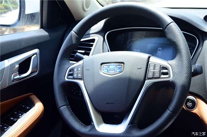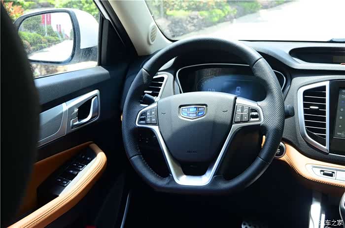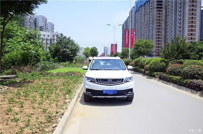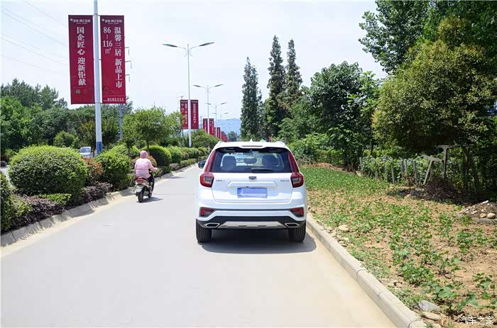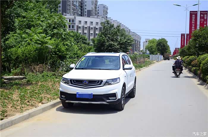 外观,这个我第一眼看到远景SUV,就喜欢上的车型,至少说在我的眼里他是很完美的,我比较喜欢这车的吉利家族化的中网,叫什么仿水滴波纹式的原理,看上去真心不错,似乎现在在吉利的家族产品中,是共同使用的,大灯则采用了薰黑处理,而大灯的内部也是含有了颗米状的LED日间行车灯,看上去挺亮的,即使是在大太阳之下也是不会影响他的亮度的。侧面的轮毂比流线线条更抢眼,非常的时尚,