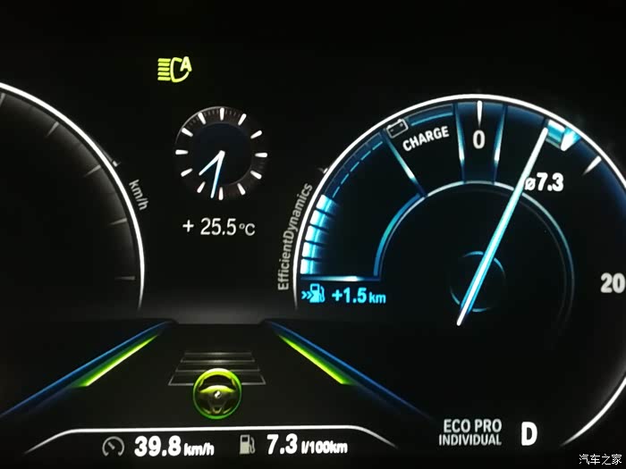 宝马还有一项比较贴心的显示功能,你的油耗会在仪表盘上出现一个标识点,有趣的是你的油门加油量多少会有比较清晰的显示与这个标识点的相对位置。在ECOPRO省油模式下,右仪表盘显示,在另外两种模式下,仪表盘下面的电脑数据模式也能显示。最大的好处是,我会不自觉地“省油”驾驶,培养出“佛系”驾驶风格,随车流,不抢道,一副与世无争的样子,也安全了不少。当然,喜欢激烈驾驶的朋友可能不会注意到这些细节。