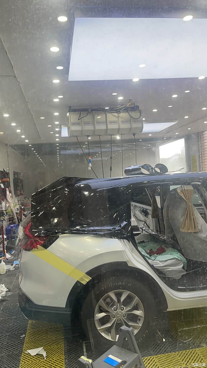 接下来就是车身颜色了,一直想贴悬浮黑顶,问了价格之后在600-1000左右,并且达不到我想要的效果一直也是拖着没立即改色,后来因工作出差去中山培训在某平台刷到中山附近有家改色便宜就去了,直接来的七彩镭射和悬浮黑顶设计,价格在2980元,让老板当时按照我的思路做的。