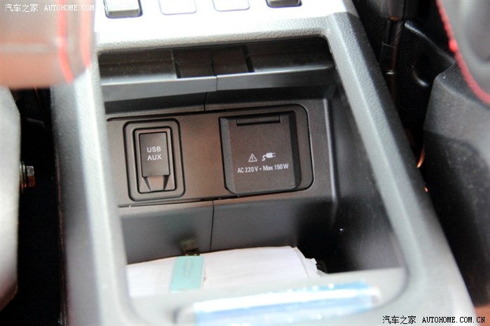 拉开来里面有USB和AUX接口,更贴心的是还有150W的220V电源接口,非常实用,值得表扬。