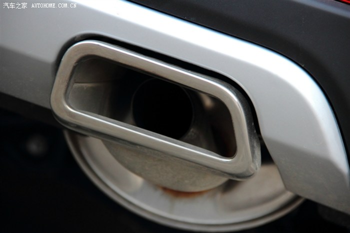 排气管特写,单排单出,而且外面是个大罩子,走的奔驰GL的路线。