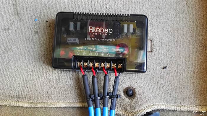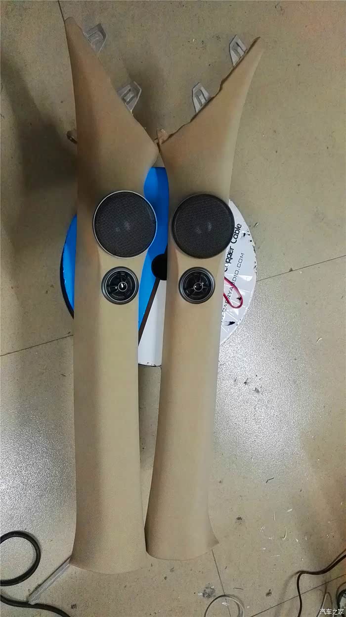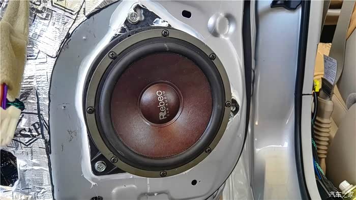 接下来是换装喇叭了:雷贝琴,国内品牌,今年来国内音响改装比赛都有过夺冠经历,确实有他的理由,特点是人声通透、明亮、细,比较符合本人的听音喜好,前声场的RS6.3三分频跟店家商量将高音和中高音单元倒模在A柱,虽说原车有仪表盘两侧的原装位,但是据说倒模安装A柱上效果更好,因为高音有指向性,A柱上的声音能无阻碍地传递到人耳,说实话,A柱倒模安装的效果确实明显的,感觉整个声音的舞台感就出来了,中置没有喇叭的,却能感觉中置有声音传出来
