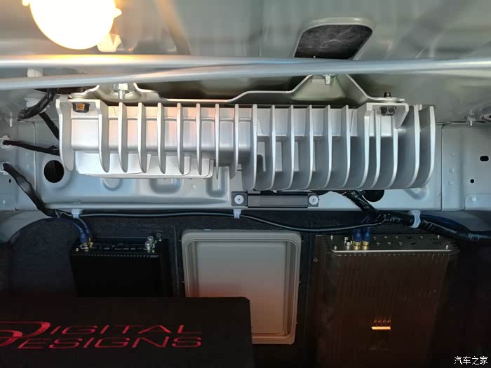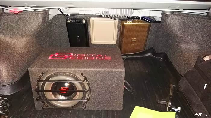 低音用的是美国DD大地震8寸无源低音,别看才8寸,下潜确实很深,干净,至少能满足我了,毕竟平时很少听DJ等,有点遗憾的是安装在尾箱,占用了一定的空间,但是为了效果,咱也是拼了,等什么时候退烧了再换成有源超薄的放在座位底下吧。