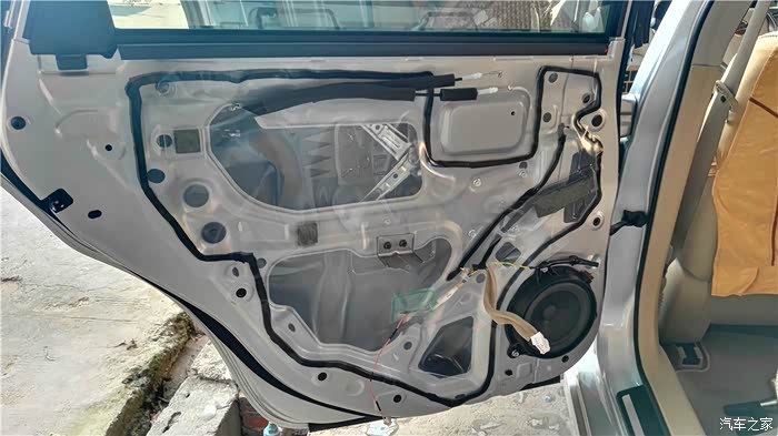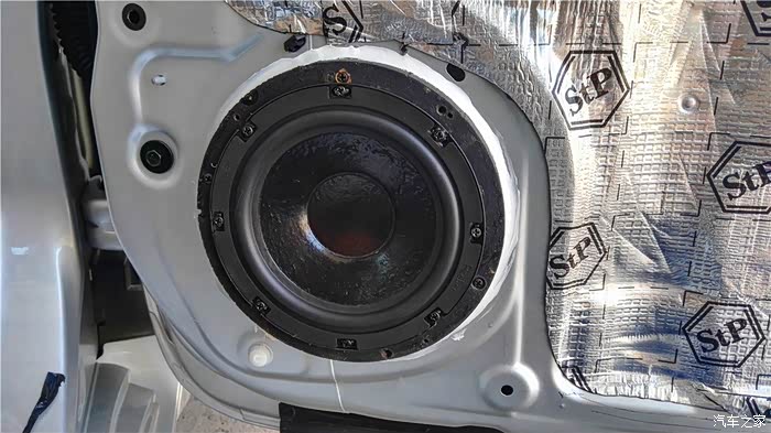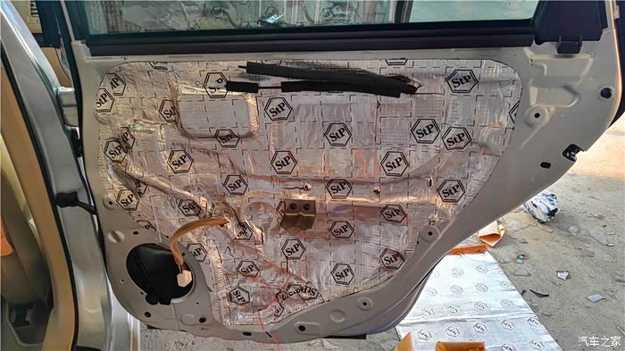 店老板在施工的时候,我也有拍照,但是照片已经找不到了,图片都是店老板提供的,施工时间持续了一天一夜。隔音用的是STP,一开始我还怀疑隔音这个东西是不是有用,难道贴这几块“狗皮膏药”上去真的能药到病除?而且天籁这车本身就很安静,真的有必要做隔音吗?后来也通过多方面了解,确实做隔音对音响效果还是有一定作用的,至少可以减少车门共振,关门声音比较厚实了,而且经过目测、对比,感觉这个牌子的用料材质确实不错,无味,至于真实的具体的效果能达到什么程度,这个的话就见仁见智了,个人感觉如果要改装音响的话,至少四门的隔音还是要做的,此次改装四门、后备箱、底盘、引擎盖、轮毂、U型槽等部位都做了相应的隔音处理。