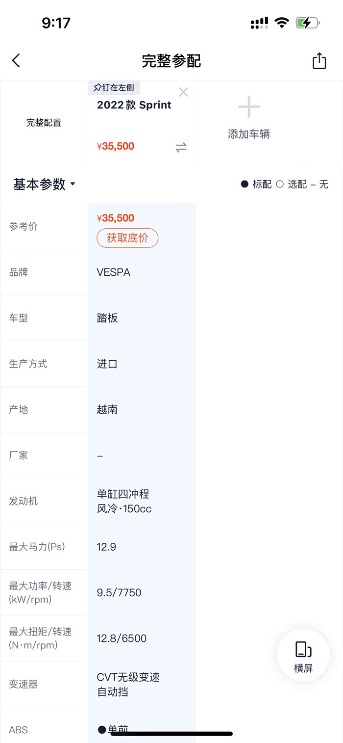 我的第一辆车,是这款是17年带abs款的150Vespa冲刺,国三的车改装传动嗷嗷猛,越南进口,单缸四冲程风冷,座高790,油箱9L,单摇臂,急速100左右。