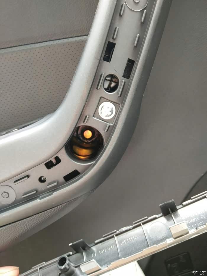 门板最下边有三个螺丝 还有 门拉手两个 门中控锁位置一个 门板上边那个三角也要扣掉 确定螺丝拆完以后 扣门板下边用力向外扳就拆掉了 接着就里边的 一个门锁拉线一个升窗电源 都拔掉 门板就下来了