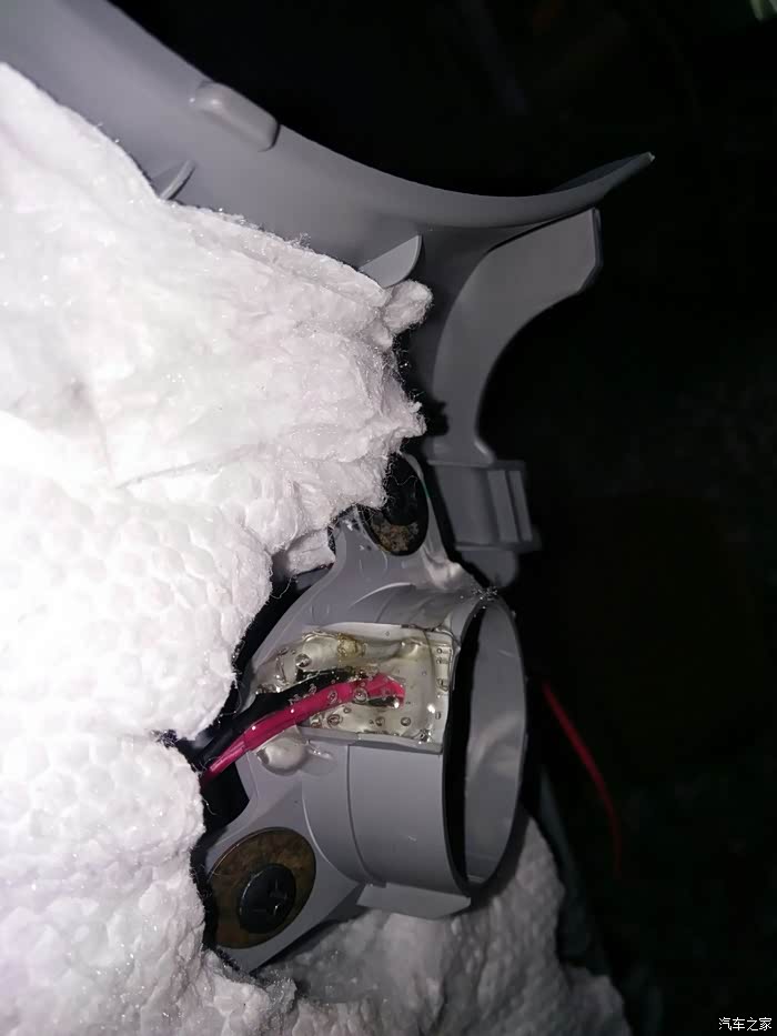 割掉原车喇叭 把后换的固定上去 就能用原车插头 方便省事 安全
