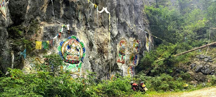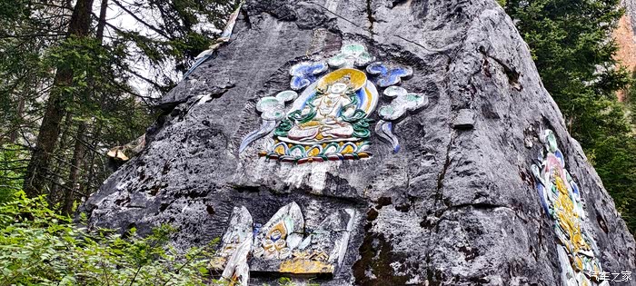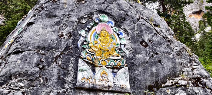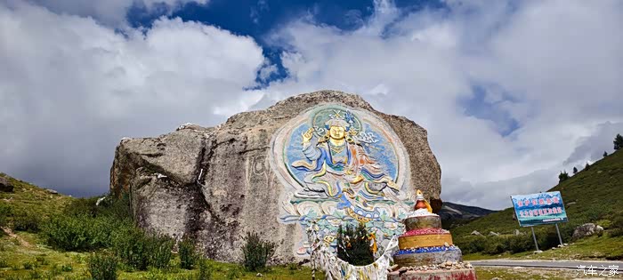 海门石高4米左右,刻有莲花生大士像,是措普湖降妖的神石。藏区各地千姿百态、神秘莫测的神山圣湖,都有美妙动人的民间传说