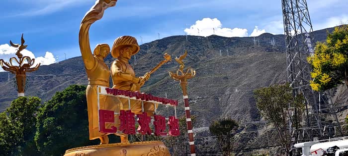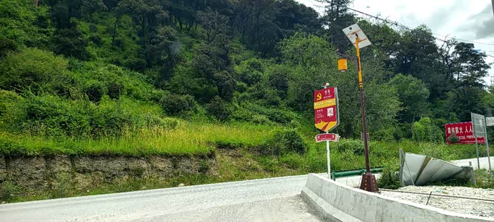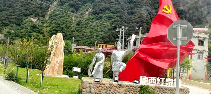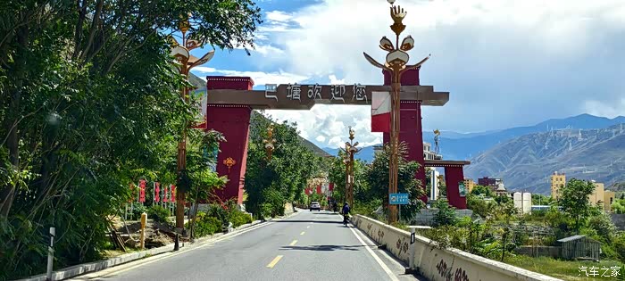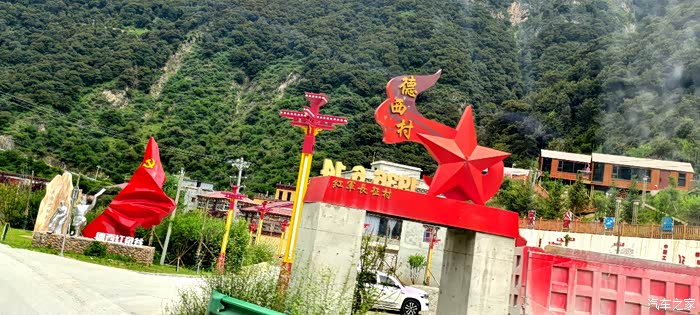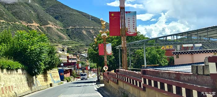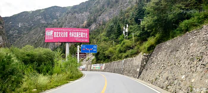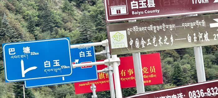 10:51途经“长征国家文化公园白玉段欢迎您 嘎拖寺红军 温泉贺龙旧居”和“金沙林海 盛德白玉欢迎您”提示牌处,标志着进入白玉县