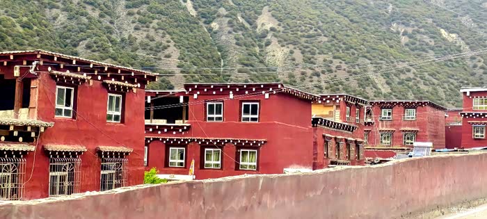 神山下的“宁玛”派寺院——措普寺,整个寺院依山而建,庄重古朴,气势恢宏,宝殿熠熠生辉