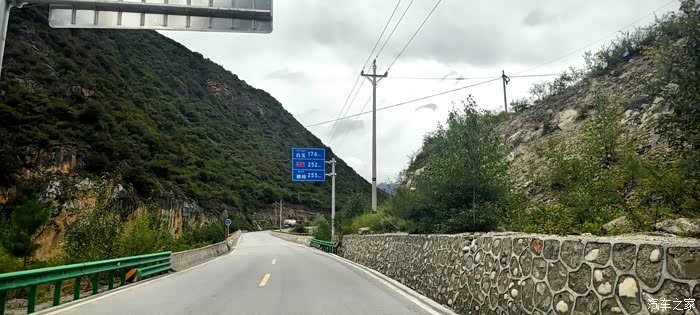 离开G318国道后,爱车沿着G215国道一路前行,前往巴巴沟(南松湖)白玉方向前行G15国道白玉方向提示牌