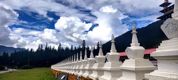 措普寺整个寺院的围墙是由无数白塔排列组成的景致