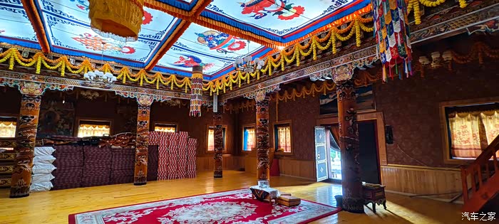 措普寺建筑庄重古朴,大殿内雕刻、壁画工艺精湛,四周经幡飘扬,寺院与野生动物和谐共处