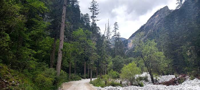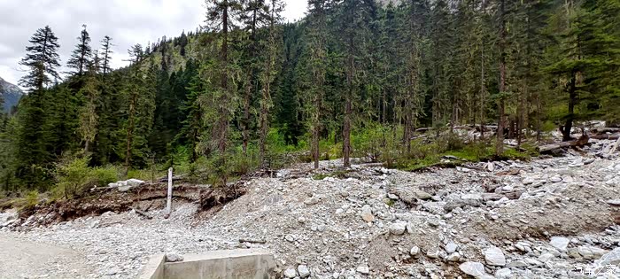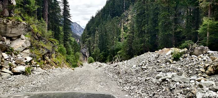通往牦牛之心的道路险峻无比,只有四驱车或者底盘高的SUV车辆才能通行。沿途有雪山消融或者暴雨导致的泥石流,巨大的山石被冲进非铺装碎石道路公路河谷,场面令人震撼。这种变化让人不禁感叹全球变暖对冰川的影响有多大。所以我们要敬畏自然,爱护自然,保护自然