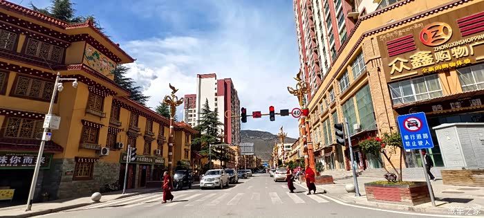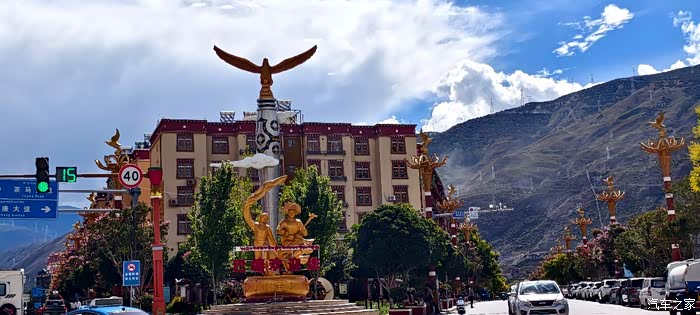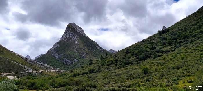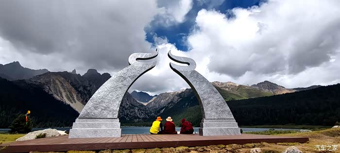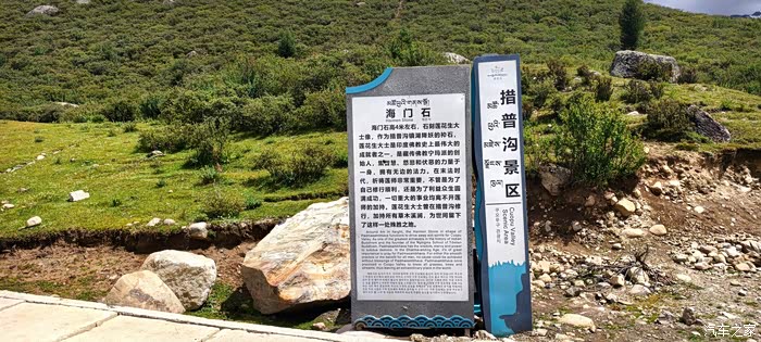 爱车一路前行来到措普沟景区与G318的三叉路口处,我们在车里随车拍照打卡