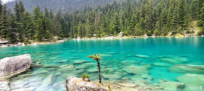 透过树林的缝隙,看到了那抹令人心动的蓝色,快步走近湖边,被那宝石般清澈的水色所震撼