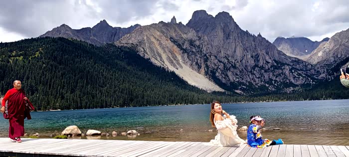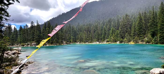我们步行栈道穿过森林,将我们引向这片神秘的水域——康珠拉措以其独特的清澈与华贵吸引着我们的目光