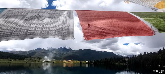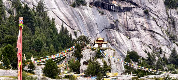青山、绿水、经幡、原始森林共同构成了一幅天堂般的美景