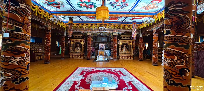 主体建筑采用藏式碉楼构造,墙体由片石垒砌而成,厚度达1.2米。大经堂面积为680平方米,内部48根木柱支撑穹顶,柱体雕刻莲花生大师像及八吉祥图案