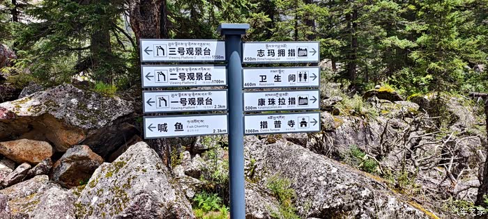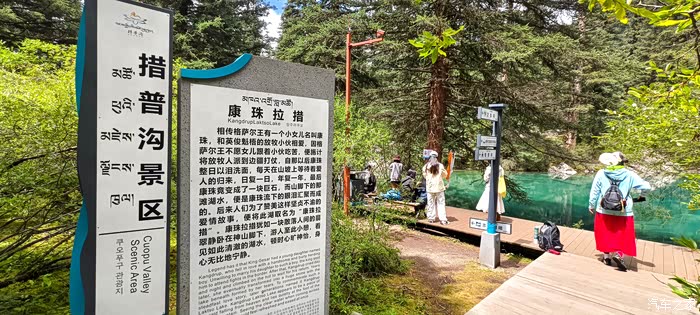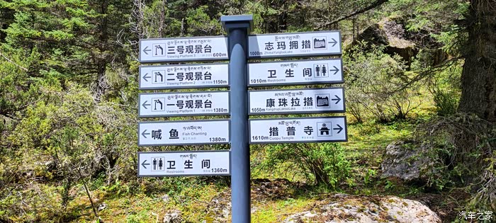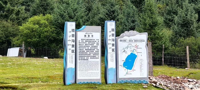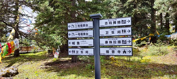 措普湖观光车停靠点处树立有观景台、康珠拉措、志玛拥措、海门石、劈剑石等景点的提示牌
