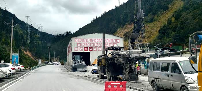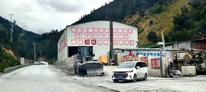 11:06途经正在修建中的白玉火车站施工工地(中国水电七局、中交一公局等单位承建的隧道、桥梁)