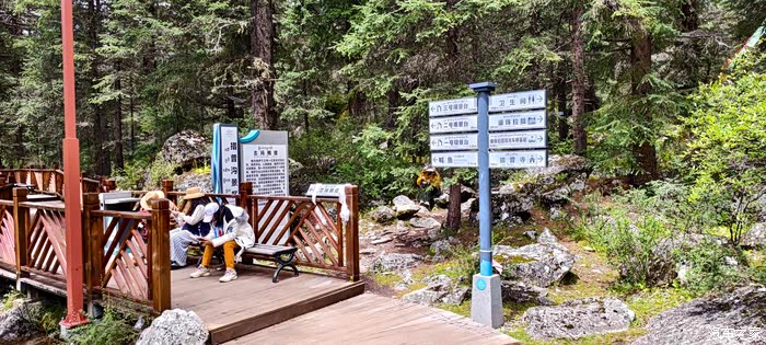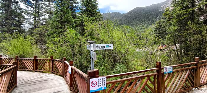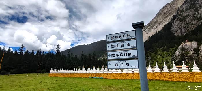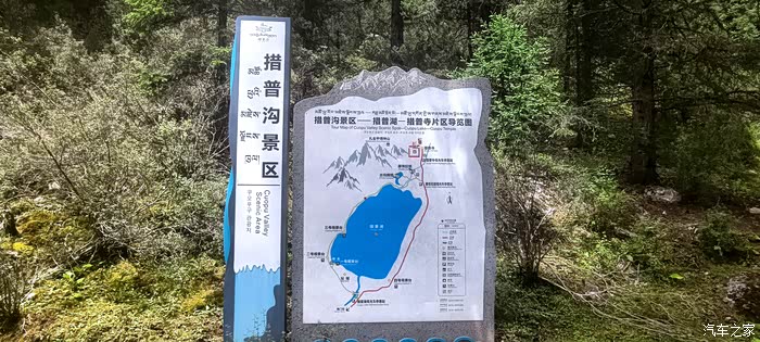 措普沟景区在各个景点的三岔路口处,都树立有景点提示牌,非常方便,便捷点赞一个志玛拥措提示牌,准备右转前往志玛拥措游览拍照打卡