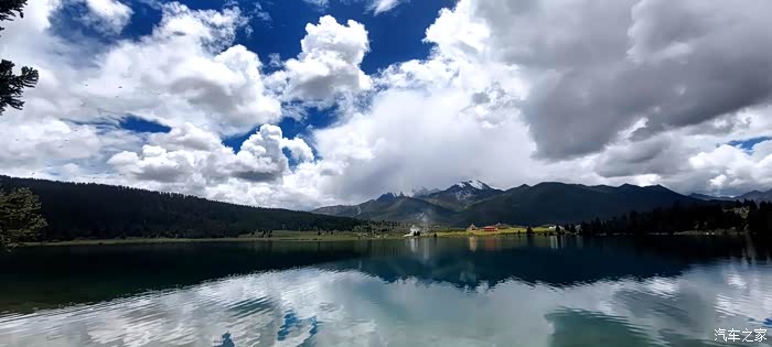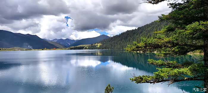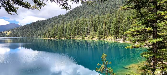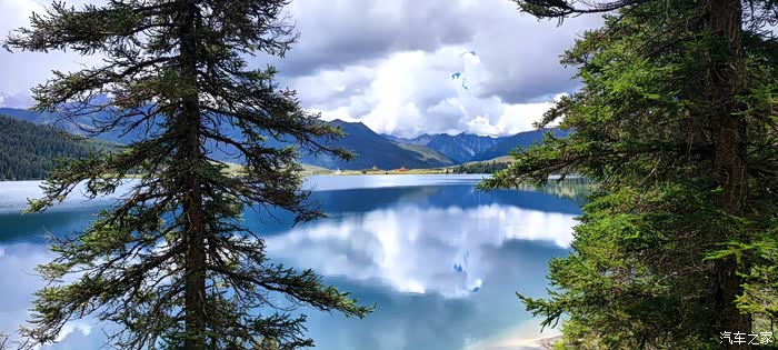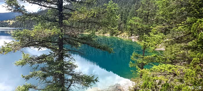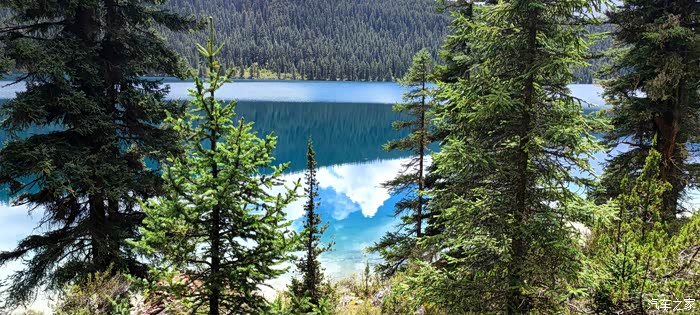 清澈的湖水。天空的蓝和白,覆盖了湖水的蓝和绿,整个湖面更加梦幻,迷离……措普湖背靠高山,坐拥森林,静守一片蔚蓝