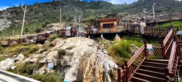 离开章德草原后,爱车就来到了措普沟景区的热坑温泉群景点