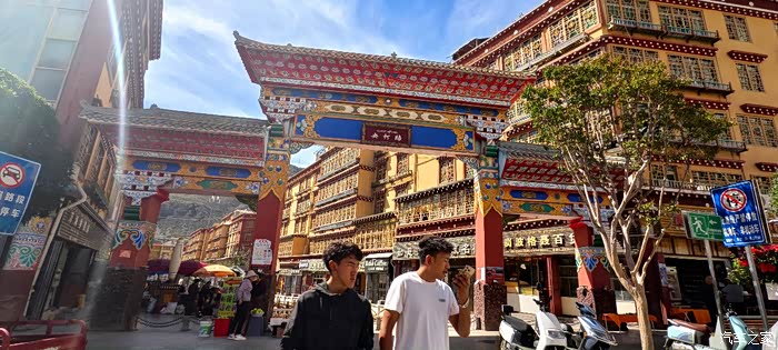 移步来到坛城外一个山坡上,在山坡上有新树立的“如意门”,喇嘛坐在下面休息,按下快门记录这一瞬间