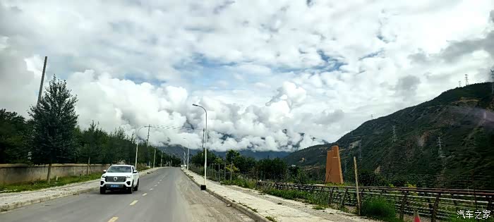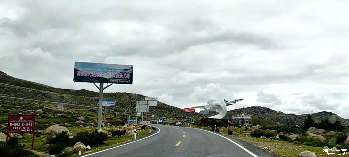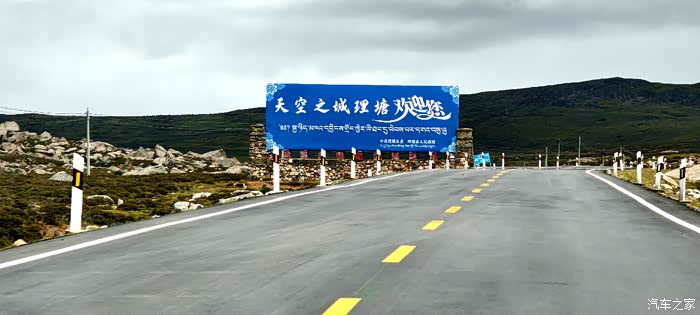 爱车继续沿着天路般的G227国道(理亚路)一路前行,道路旁树立有“天空之城理塘欢迎您”宣传牌