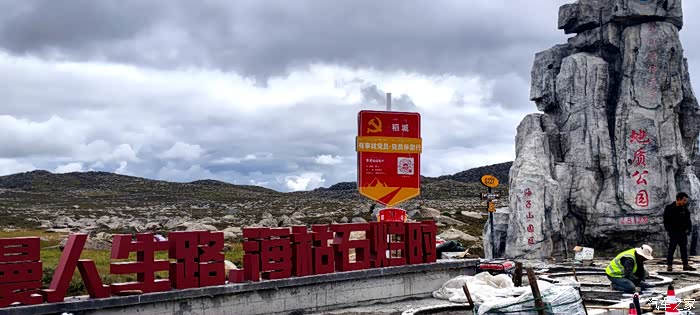 于11:28左右途经海拔4500米的海子山提示牌及海子山地质公园处,依然如故随车打卡记录一下
