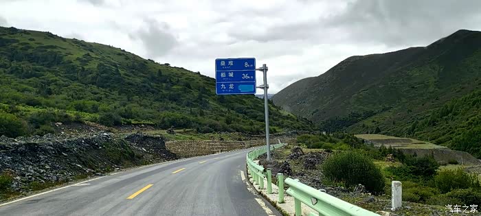 顺利通过长度为4409米的无名山隧道后,爱车继续沿着路况不错的G549国道一路盘旋而下,途经“桑堆8公里稻城36公里”提示牌处,依然如故的随车拍照打卡记录,加油