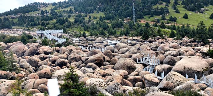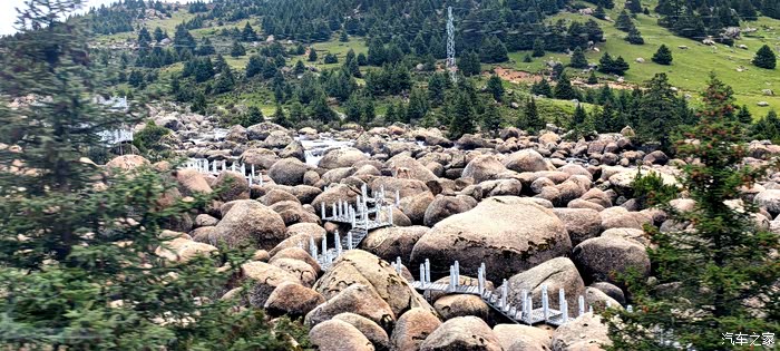爱车继续沿着路况不错的G227国道一路上行,随着发生海拔的不断升高,G227国道旁出现了壮观的乱石地质地貌地段