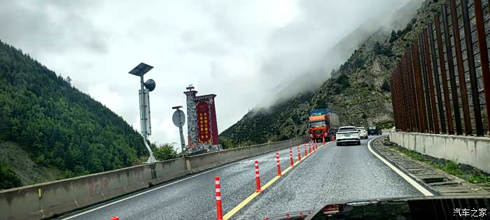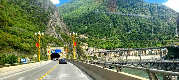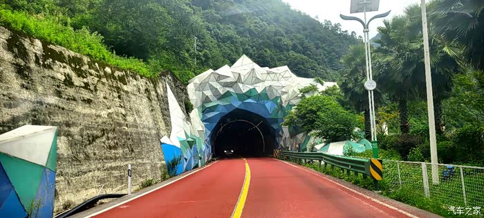 爱车沿着G318国道雅江段螺旋路段一路盘旋而下,来到长度为5682米的高尔寺隧道前随车拍照打卡记录一番