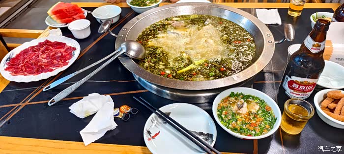 18:46在入住名山区秀水茗城大酒店不远处江舟漁舫火锅餐馆晚餐