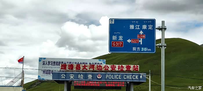 13:31途经理塘大河边公安检查站、G227新龙与G318雅江康定方向的三岔路口处,离开理塘进入到雅江县