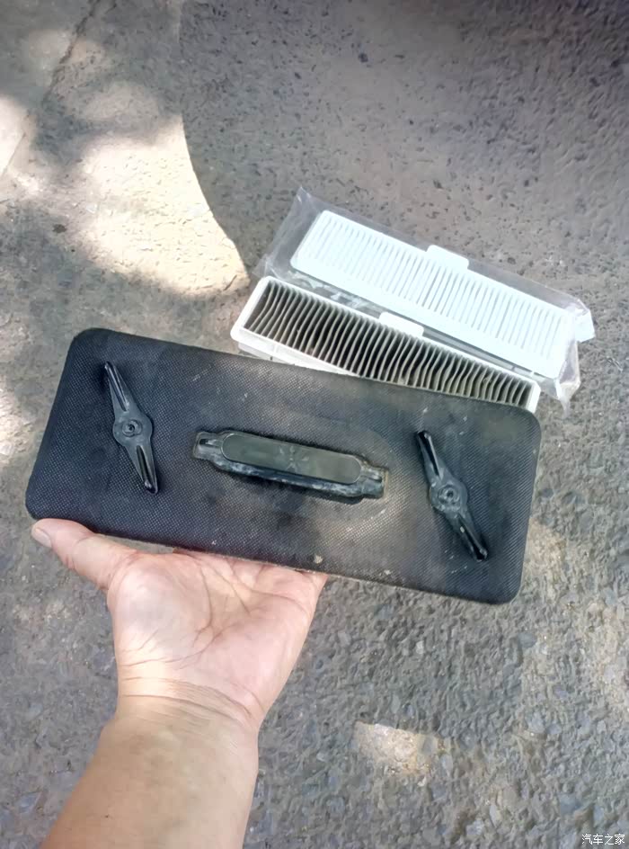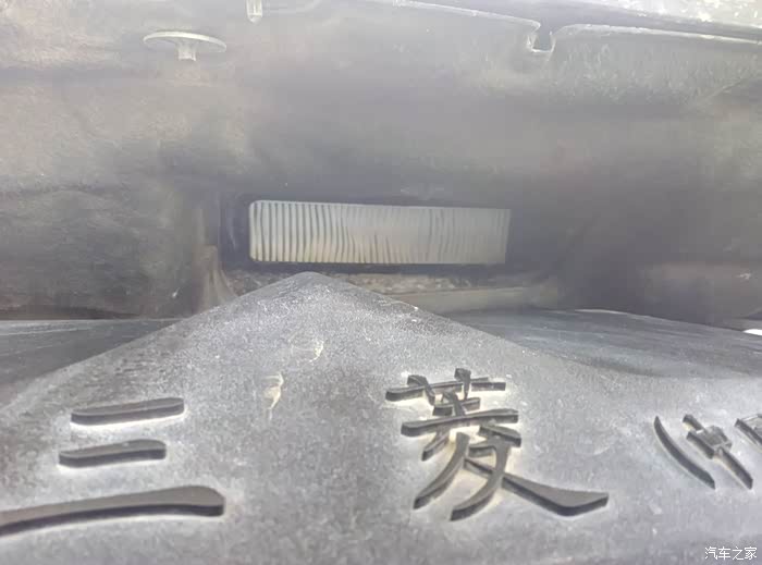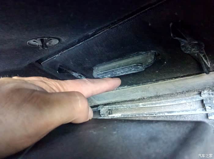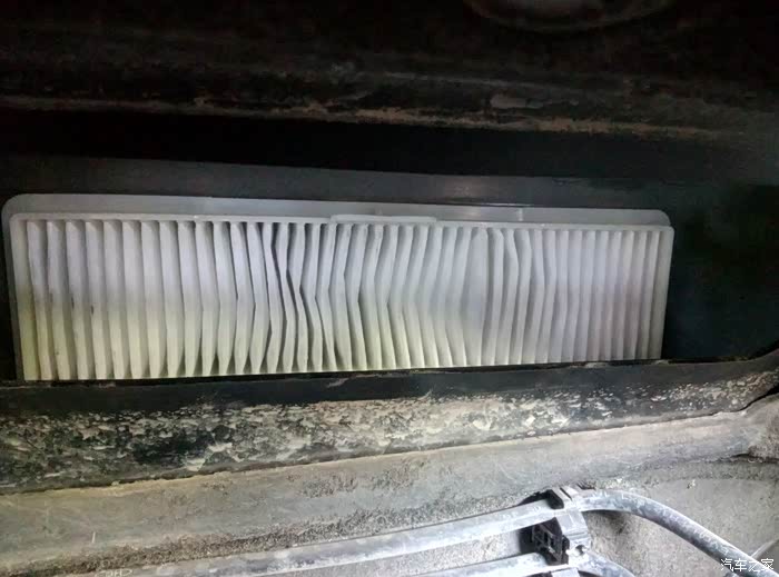 现在已经看见汽车空调滤芯了,手机伸进去拍照也很清新。先目视看清楚【滤芯位置状态】,取下时候,双手伸进去拉住滤芯上部的白色拉手就松动了,慢慢拉出。