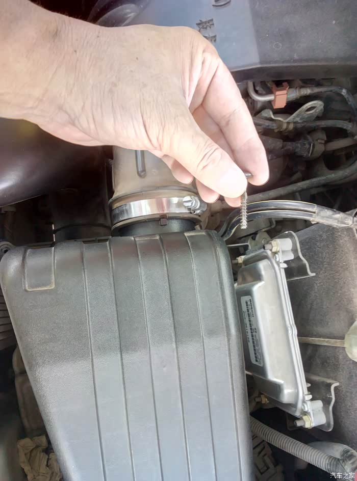 拆卸:发动机进气管与空气滤清器的连接部位螺丝!
