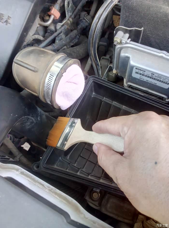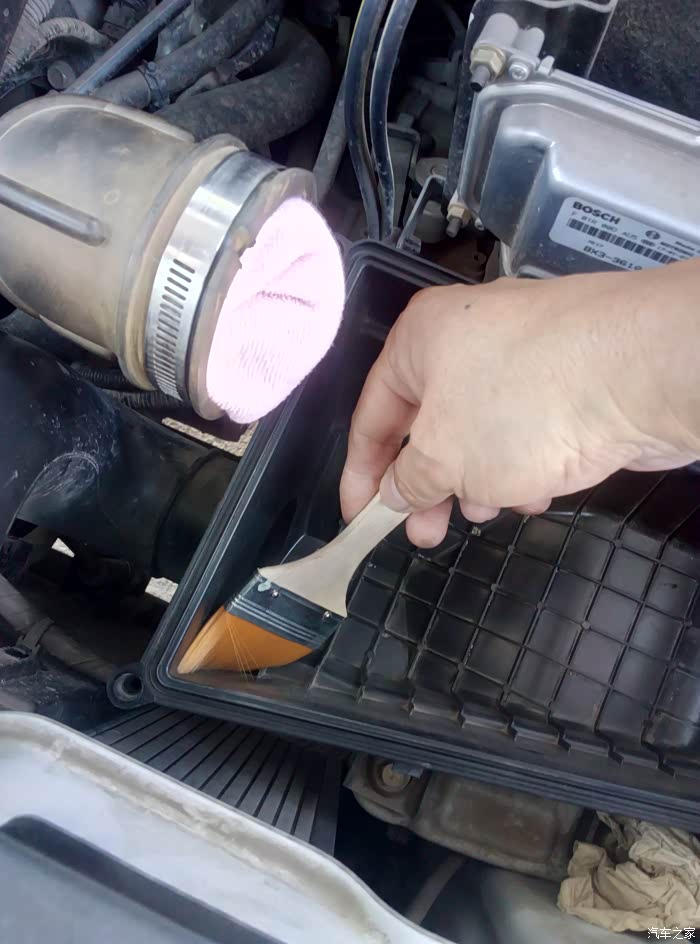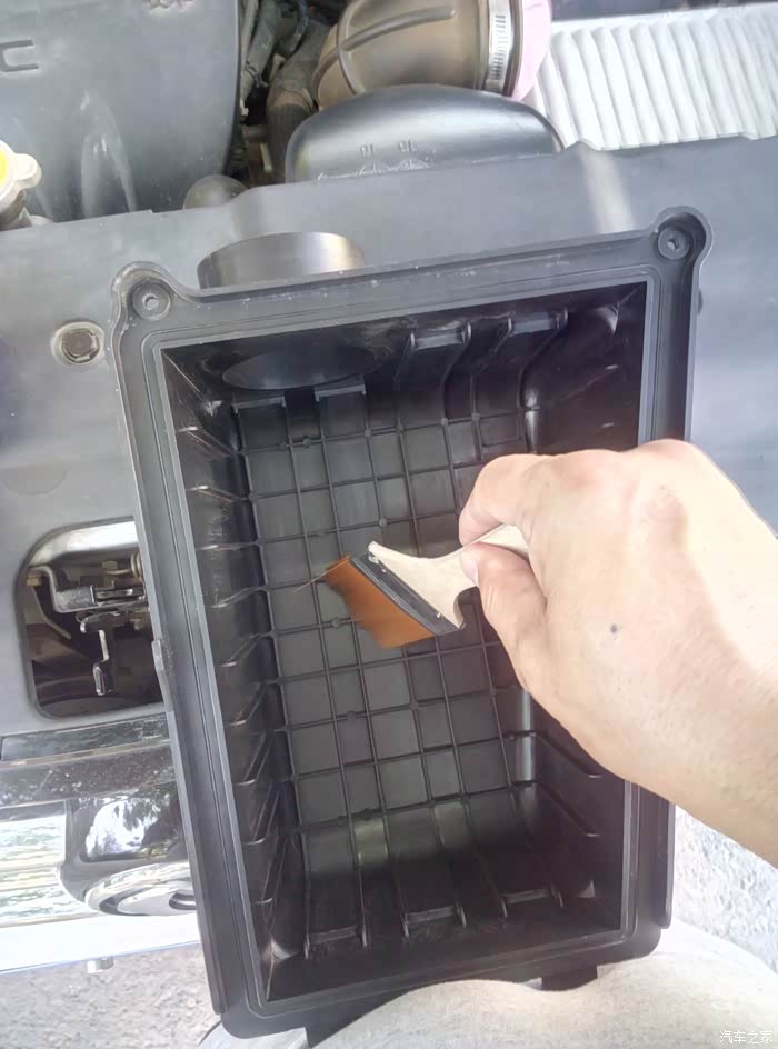 把空气滤清器底座清理干净,动作轻柔不要让灰尘扬起来!
