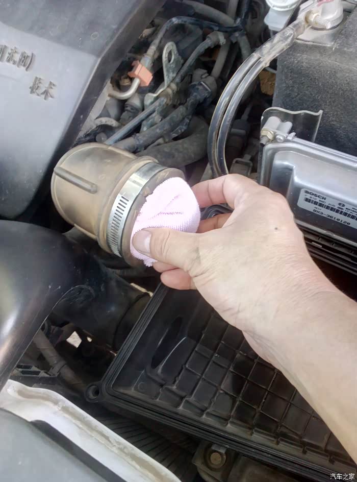 为保证发动机进气口不掉入灰尘我用干净擦巾轻轻堵住