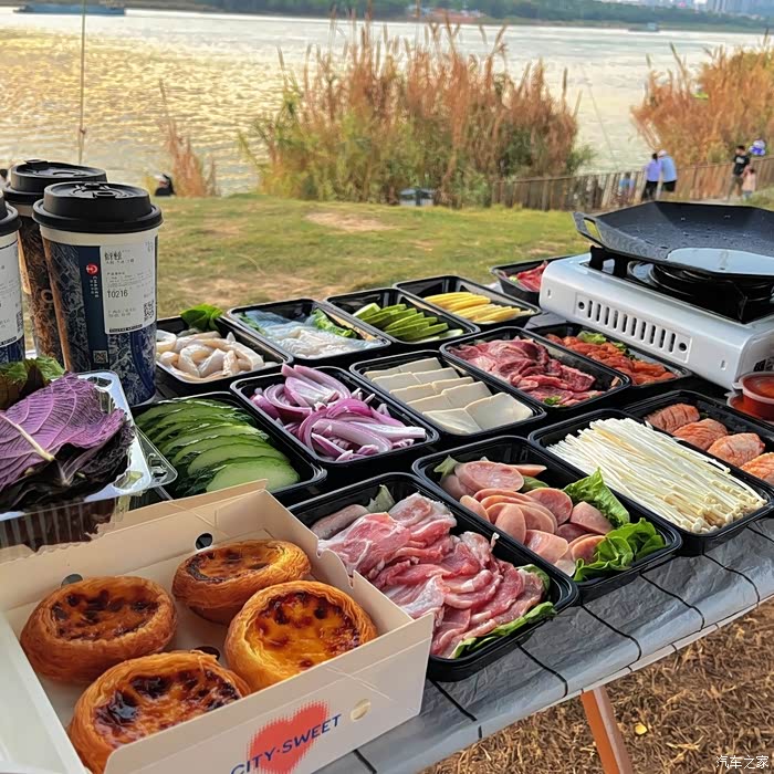 经过一段愉快的旅程,终于抵达了露营地。打开奥迪A7L那宽敞的后备箱,我轻松地搬出帐篷、睡袋、桌椅,还有精心准备的涮菜食材。它超大的储物空间,完美装下了我所有的露营装备,让这次出行毫无后顾之忧。