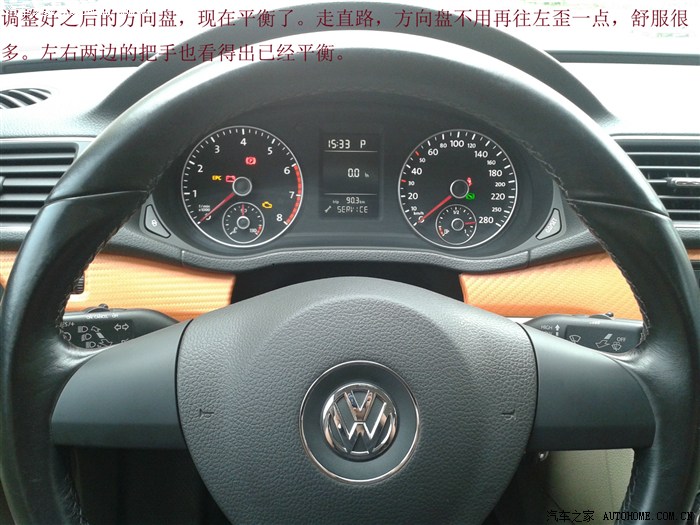 本次调整完成,方向盘调正。跑高速的时候,不用看到方向盘被往左歪那么别扭。当然,如果你能忍受那别扭,本帖可以忽略。感谢大家的关注,谢谢。