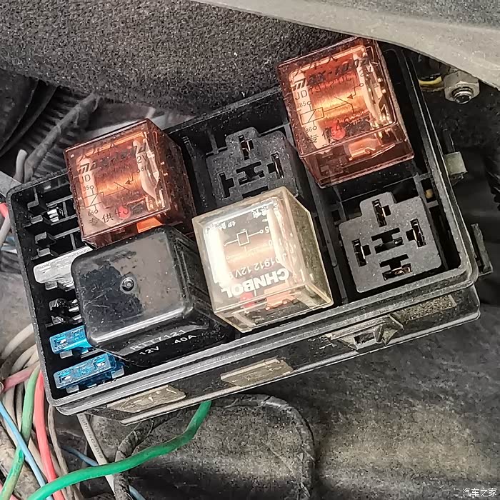 安装位置就在原车机舱保险盒的上方,为了用电安全,保险丝、继电器、控制摁扭都得准备