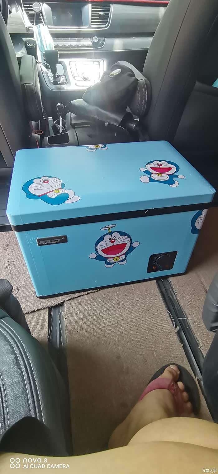 最后总结一下使用效果,如果是自驾游的话,出游前先把冰箱搬下来用家用电给它来个预冷,这样整个旅程就可以一直有冷饮了,如果没有预冷的话,放入瓶装水大约需要工作两个小时以上才会把饮料冷下来,如果是长途行车要把冰箱温度调高一些,要不然真的会冻成冰块哦,前些日子自驾去重庆,一千多公里,冰箱一直工作