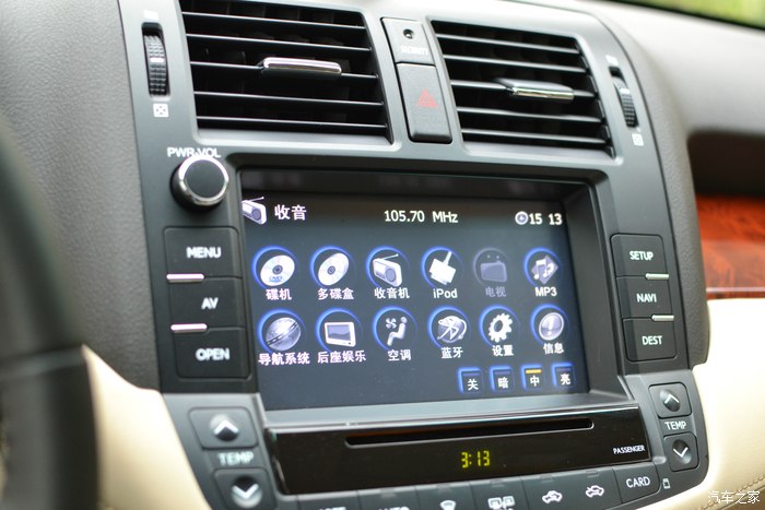 来谈谈车的情况,首先谈谈音响。原车音响不像大家说的那么烂,我觉得可以接受,车一般都是在行驶过程中,路噪和风噪不可避免,在这种环境下欣赏音乐不能有太高的要求,有这样我已经觉得很不错了。由于皇冠的超级宁静,让我又开始在车上听CD了,以前由于我的马6噪音太大,车上很少欣赏音乐,而是以收音机为主。加装的DVD在看DVD碟片时感觉音响就差很多,声音过小,而且音质也非常的一般,可以说比较烂。车载蓝牙连接很方便,不能直接拷贝手机里的通讯本。通话声音也还可以,但是声音巨小,每次通话都要增加很大的音量才可以。倒车影像也不错,有轨迹指示,就是有点偏慢了点。换到倒车档要约2秒钟后才能出现倒车影像,这个对于急性子来说,不是那么方便。加装的DVD可以用USB连接U盘播放MP3,也可以用接口连接苹果4S,直接播放4S里面的内容。5S反而不可以。导航比较好用,由于加装了GPS的原因,搜星极快。而且一般都是10颗星以上。