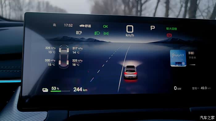 B.行驶到50公里时,表显续航244公里、电量剩53%.即续航掉87公里、电量掉18%,合算续航达成率57.4%。