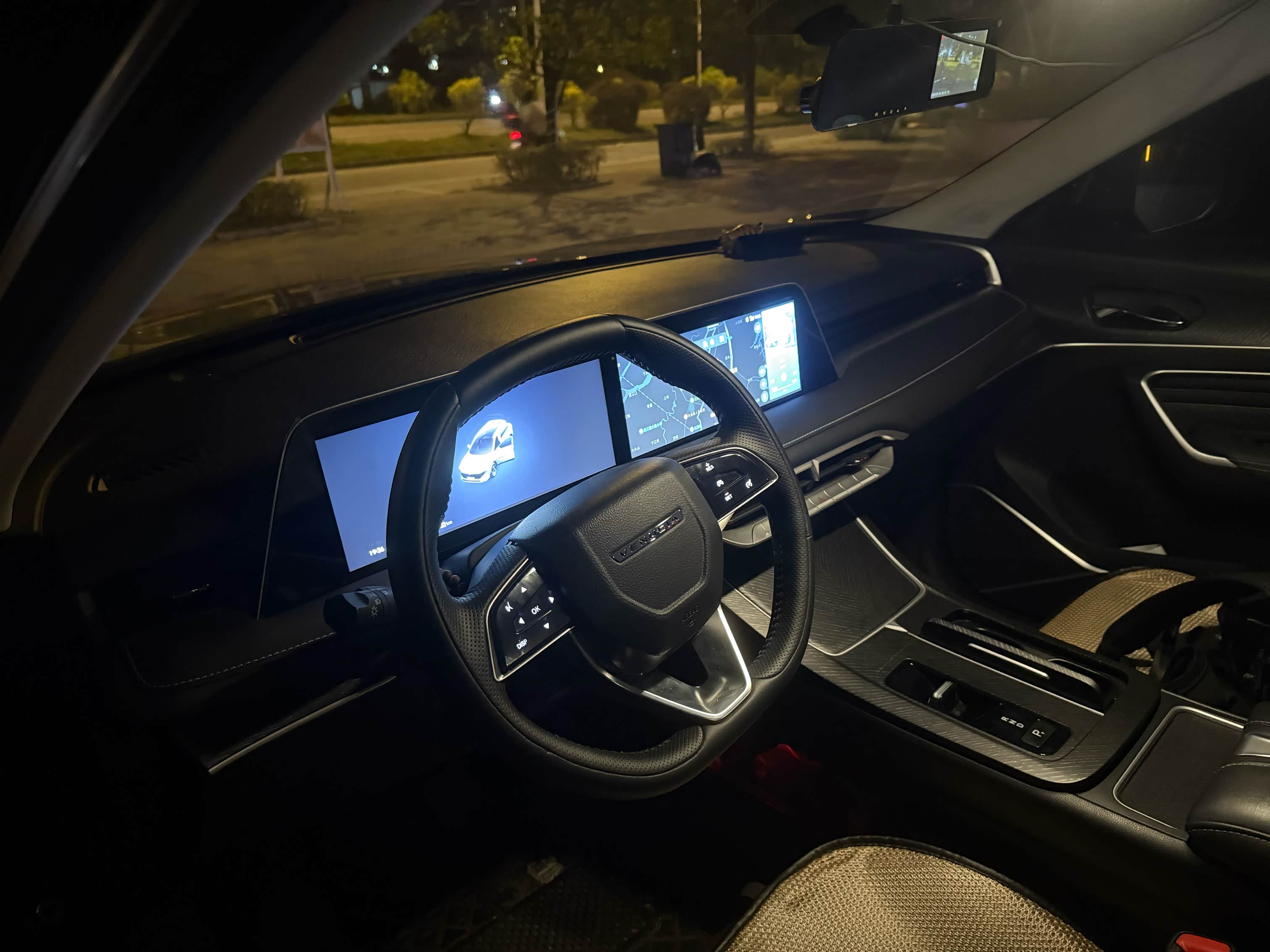 周五晚上市区气温22℃,晚风微凉,特别舒服。小区楼下的辅路停满了周边住户的车,只能慢慢挪着走,路口还有几个小孩追跑打闹,得时刻留意减速。便利店门口的停车位超小,也就比车身宽个20厘米,好在打开360全景影像,盯着屏幕慢慢打方向,一把就停进去了,不用来回倒腾。从便利店出来去超市的路上,晚高峰刚过,主干道车流顺畅,路灯亮起来后,路边的梧桐树影子落在车身上,氛围感还挺足。