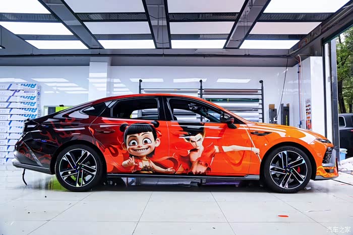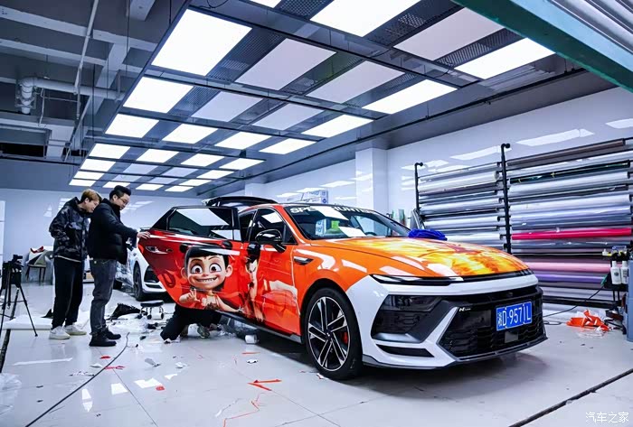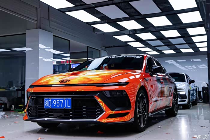 当崭新的车衣完美贴合车身,索纳塔N Line瞬间焕发出别样的魅力,仿佛披上了一层闪耀的战衣。