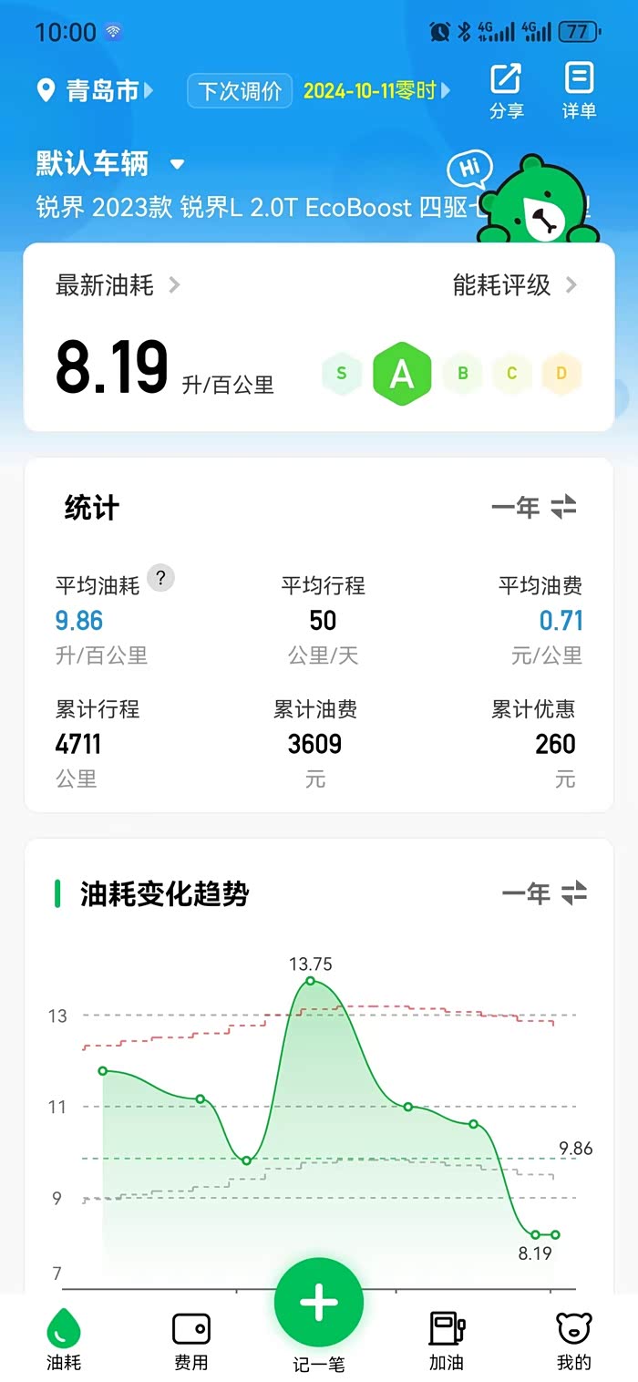 关于油耗,这是许多潜在中大型SUV车主普遍关心的问题。锐界L以其超过2吨的车重和2.0T的动力配置,确实在油耗方面需要理性看待。为了给大家一个更直观的认识,我整理了几组油耗数据:在早晚高峰的城市道路上,平均时速约为21公里时,油耗为13.8升;而在国庆期间的高速行驶中(尽管遭遇了一些堵车,但不算特别严重),油门也踩得比较猛,油耗大约在8升左右;截至目前,仪表盘显示的整体平均时速为36公里,油耗为9.2升(但实际测量值略高,约为9.8升)。